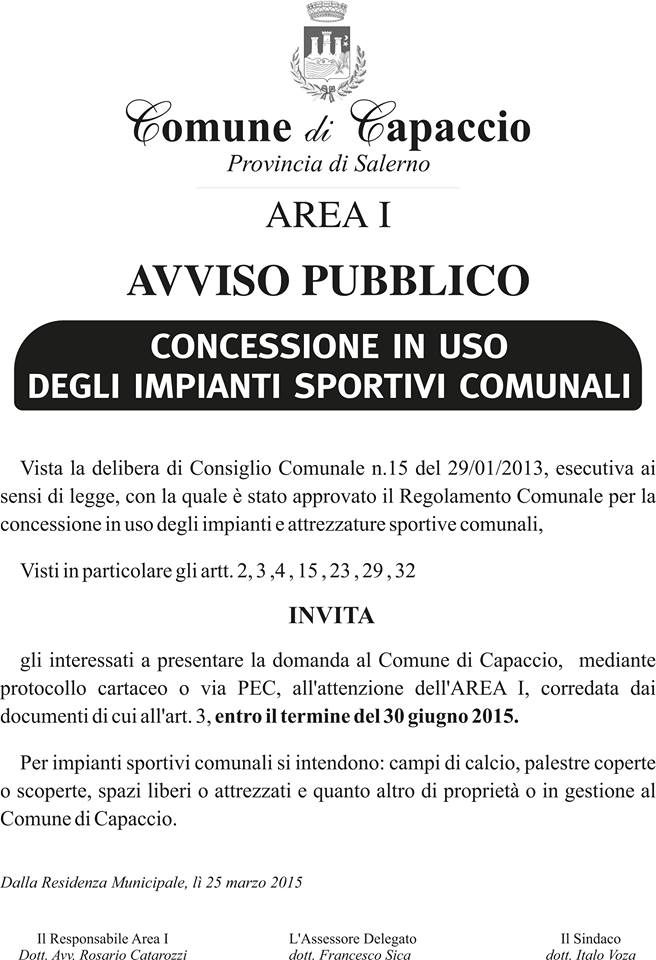 AVVISO PUBBLICO CONCESSIONE IN USO DEGLI IMPIANTI SPORTIVI COMUNALI