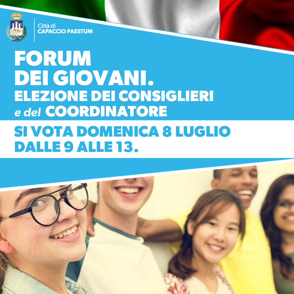 Si terrà domenica (8 luglio), dalle 9 alle 13, presso la Sala Erica,  a Capaccio Scalo,  la votazione per l’elezione dell’Assemblea e del Coordinatore del Forum dei Giovani della Città di Capaccio Paestum. Saranno eletti un coordinatore e un numero di 14 (min)  e/o 18 (max) di consiglieri. Sono elettori tutti i giovani residenti nel Comune ed iscritti nell’Assemblea del Forum, con età compresa tra i 16 e i 34 anni alla data della votazione. «C’è grande voglia da parte dei nostri giovani di riprendere le attività del Forum. – evidenzia il consigliere con delega alle Politiche Giovanili, Fernando Maria Mucciolo – Dal nostro canto, ci sarà il massimo supporto per portare avanti eventi e progetti». Come si vota? L’elezione del Coordinatore e dei Consiglieri è contestuale. Si vota barrando sia sul nome del candidato sia sul coordinatore su di una apposita scheda preparata dal Comune. Ciascun elettore potrà esprimere al massimo una votazione di genere tra i candidati alla carica di consigliere appartenenti ad una sola delle liste del candidato coordinatore prescelto. Le altre schede saranno considerate nulle.     L’UFFICIO COMUNICAZIONE