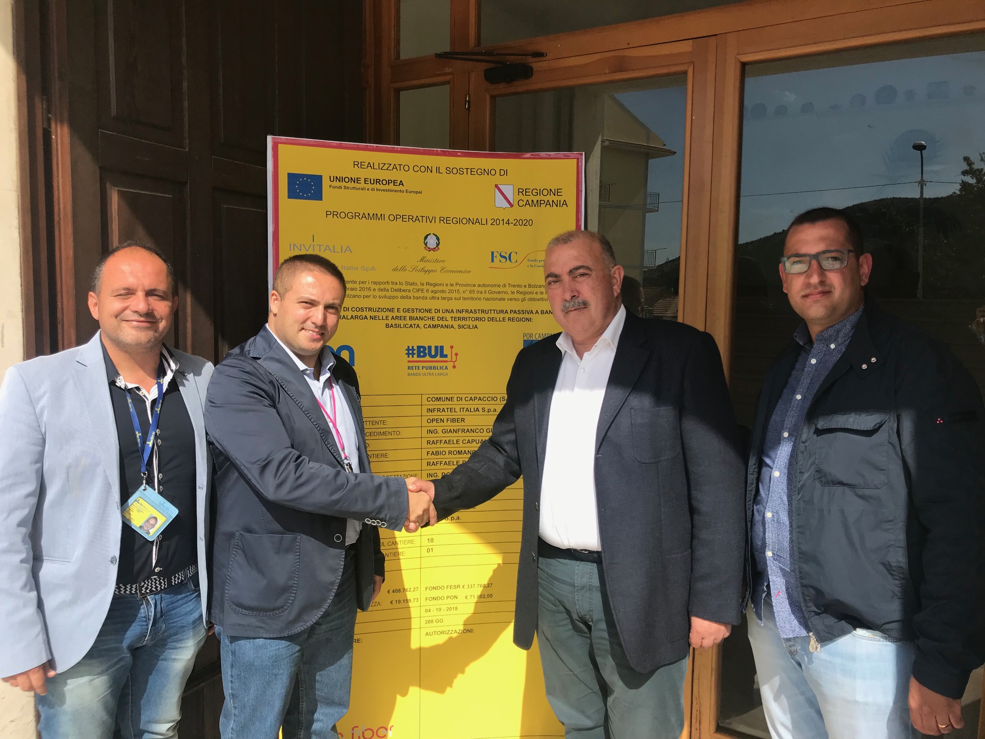 A posare materialmente la fibra ottica in modalità FTTH (cioè la fibra direttamente all’interno delle abitazioni) e FWA (Fixed Wireless Access) è la società Open Fiber Spa. Il piano di cablaggio prevede la copertura di circa 1400 unità immobiliari nelle aree “bianche” di Capaccio Scalo, Ponte Barizzo e Laura.