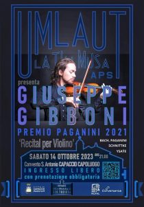 «Conferire il primo premio a un nostro conterraneo ha, per noi, un valore particolare: vuol mettere in evidenza che, con il talento e la determinazione a rincorrere i propri sogni, anche dalla provincia può prendere il via la scalata verso le vette più alte – dichiarano Domenico Tanza, presidente dell’associazione Umlaut – La Tua Musa, e Dario Marandino, direttore artistico dell’evento - Quella di Giuseppe Gibboni è una storia emblematica: la storia di un ragazzo che, partito dalla provincia del Sud Italia, precisamente da Campagna, a pochi chilometri da Capaccio Paestum, è riuscito a portare il suo nome e la sua arte nei più importanti teatri del mondo».
